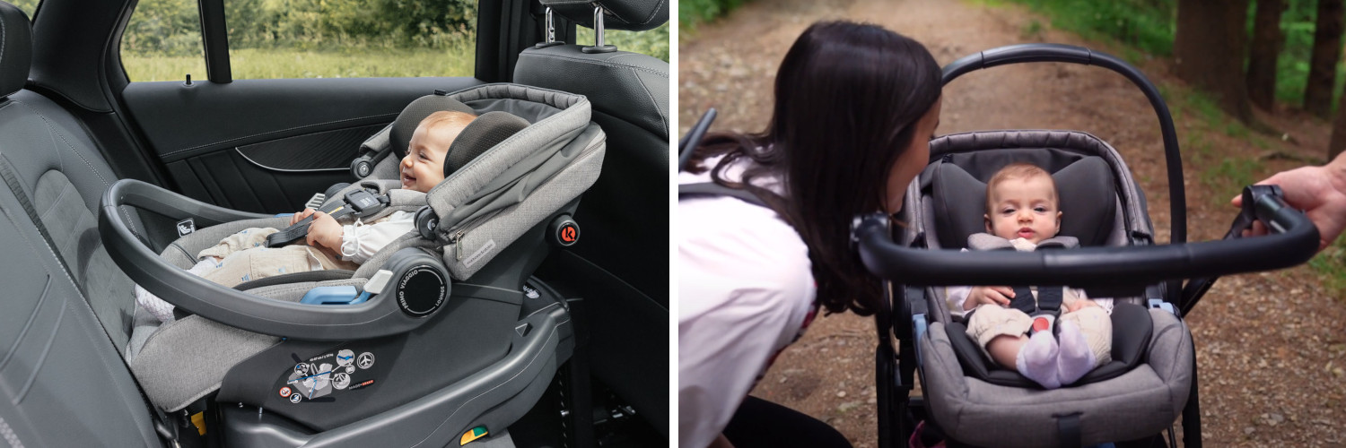 Po wyjęciu z samochodu fotelik może łatwo zmienić się w gondolę dopasowaną do wózków Peg Perego.