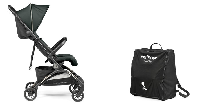 Kompaktowa spacerówka PegPerego szybko się składa, niemal automatycznie, do bardzo niewielkich rozmiarów. W zestawie z wózkiem znajdziesz torbę podróżną dopasowaną do tego modelu.