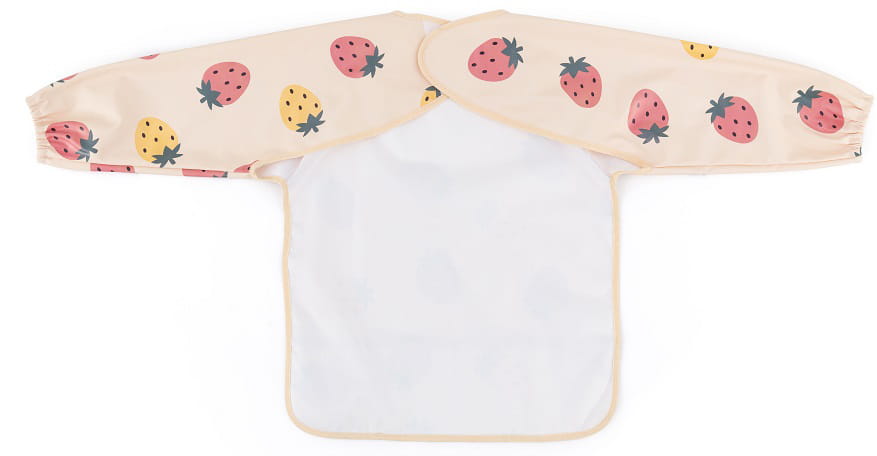 Petite&Mars Ben - śliniak, fartuch z długim rękawem | Beige Strawberry