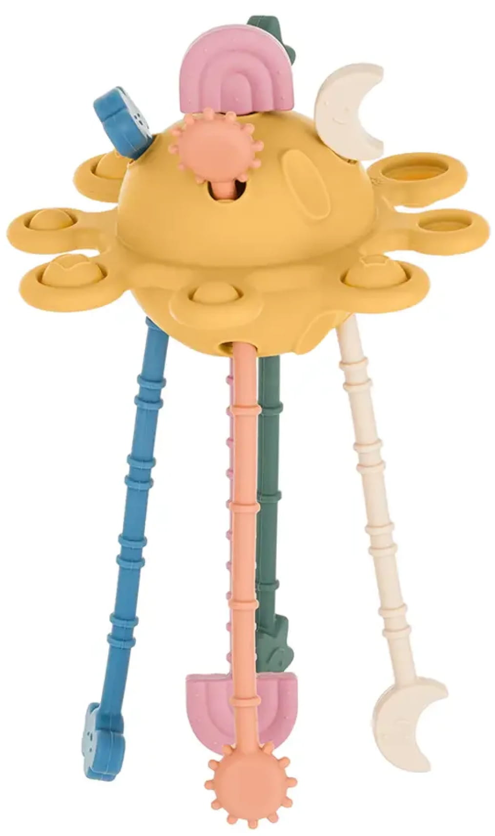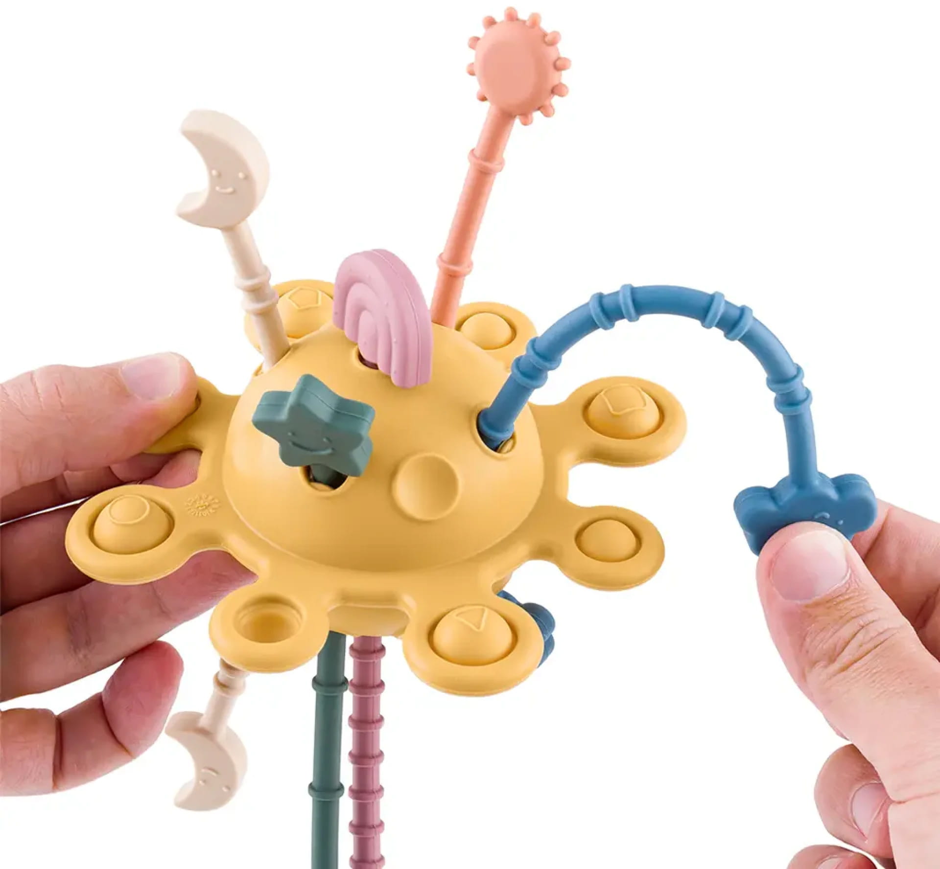 Produkt jest stworzony z silikonu spożywczego, wolnego od BPA. Dzięki temu zabawka może służyć jako gryzak, którym maluch może pomasować bolące dziąsła. Zabawa wydaje ciekawe dźwięki, pomaga dziecku w odkrywaniu nowych struktur i odgłosów.