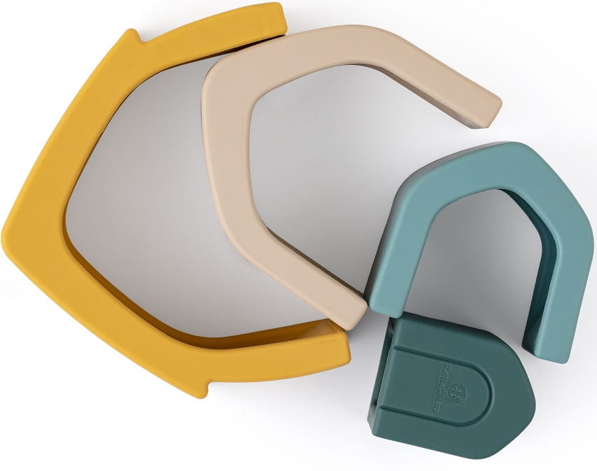 Układanka Petite&Mars składająca się z 4 łuków tworzy piękny, kolorowy domek. Zabawka jest stworzona z myślą o dzieciach od 12. miesiąca życia, wykonano ją z miękkiego silikonu przeznaczonego do kontaktu z żywnością. Ergonomiczna budowa sprawia, że elementy zabawki są wygodne w chwytaniu przez małe rączki, a ich kształt i rozmiar nie zagraża bezpieczeństwu.