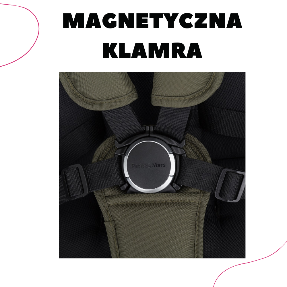 Pasy z magnetyczną klamrą sprawią, że szybko i łatwo zapniesz dziecko. Dzięki temu siedzisko jest nie tylko wygodne, ale też bezpieczne, bo przygotowane na różne wygibasy małego pasażera.