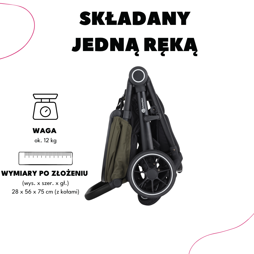 Składanie jedną ręką to już standard - w lekkiej spacerówce dla dzieci Street 2 AIR nie brak tej niezwykle cennej i praktycznej funkcji. Dzięki temu trzymając dziecko w jednej ręce, drugą możesz złożyć wózek - wszystko to z zachowaniem stabilnej pozycji i ergonomii.
