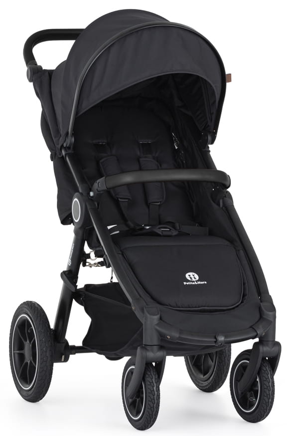 Petite&Mars Street 2 AIR - lekki wózek spacerowy do 24 kg, pompowane koła | Black Perfect Black