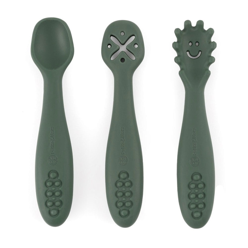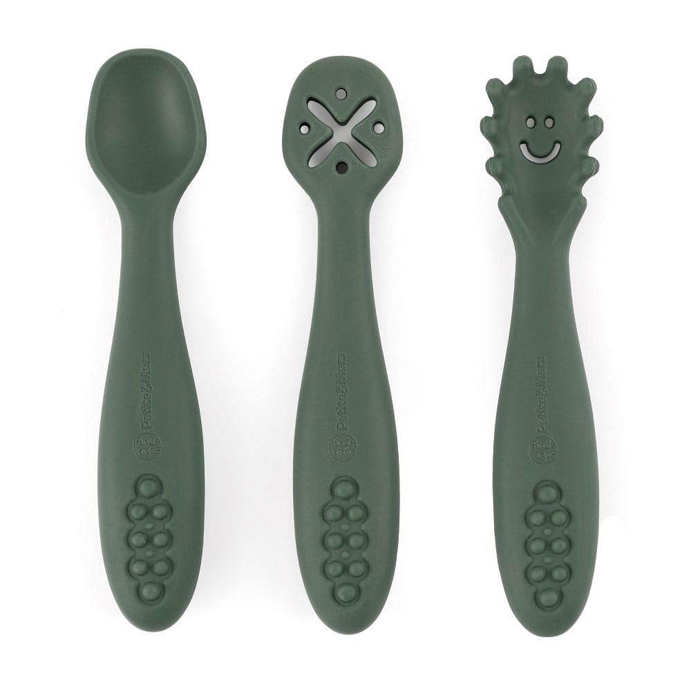 Petite&Mars Take&Match - silikonowe łyżeczki, zestaw 3 szt | Misty Green