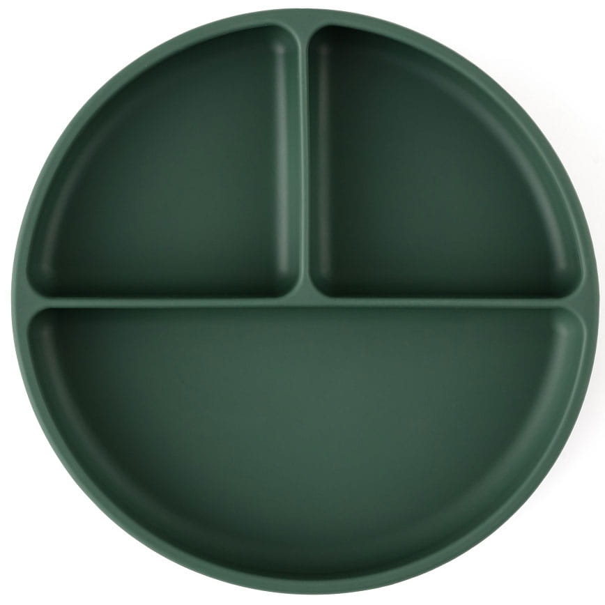 Petite&Mars Take&Match - silikonowy talerzyk z przegródkami i przyssawką | Misty Green