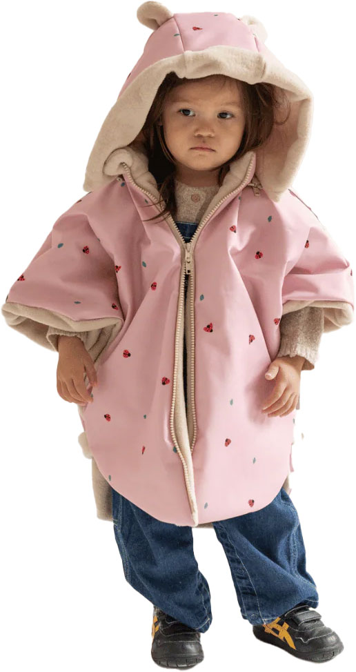 - Stylowe detale - ozdobne uszka na kapturze nadają ponczu uroczy wygląd, a jednocześnie nie wpływają na funkcjonalność;