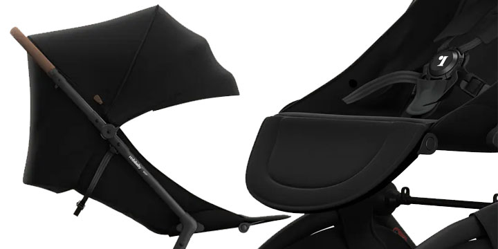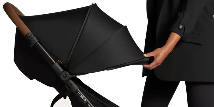 Rozkładana budka przeciwsłoneczna uszyta z materiałów z filtrem UPF50+ sprawia, że słońce nie będzie powodem, dla którego mielibyście zrezygnować ze spaceru.