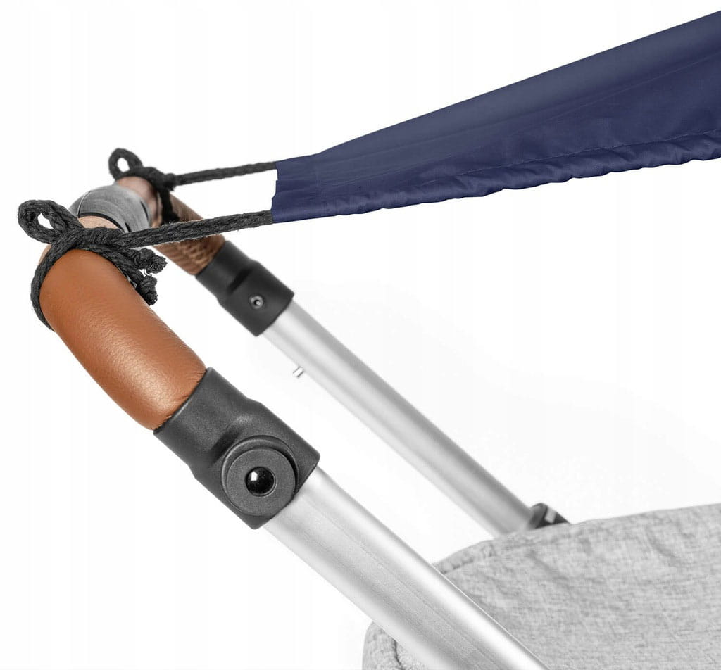Montaż daszka jest bardzo prosty - wystarczy założyć elastyczną gumkę wokół wózka, zaś 2 sznurki znajdujące się u jego drugiego końca uwiąż na uchwycie wózka. Można go również mocować z boku, co świetnie sprawdzi się jako ochrona przed słońcem, gdy to jest niżej na niebie i świeci bardziej pod kątem, w szczególności wcześnie rankiem i późnym popołudniem.