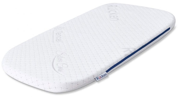 Rucken Egg to materac o wymiarach 75x37 cm, został wykonany z użyciem certyfikowanych materiałów. Stworzono go z myślą o koszach mojżesza, pasuje również do popularnego łóżeczka Chicco Baby Hug. Materac Rucken Egg został wykonany z dwóch gatunków pianki - VitaRest HR35/32 o wysokiej elastyczności oraz T25/42. Co więcej, zastosowano w nim wiele systemów - w tym system wentylacji Air Pro - które mają za zadanie zwiększyć komfort malucha i zadbać o to, aby poza ramionami mamy nigdzie nie było mu równie wygodnie, jak we własnym łóżeczku.