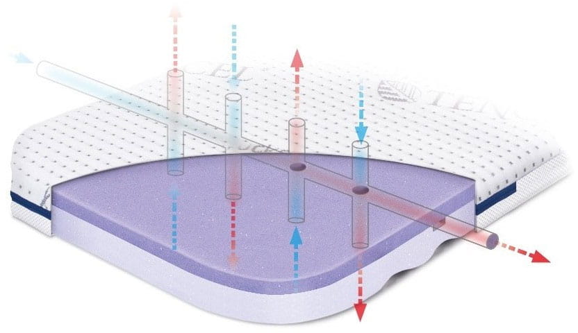 Do stworzenia pokrowca materaca wykorzystano dzianinę z włókna Tencel, który wyróżnia się swoim naturalnym pochodzeniem. Jest on bardziej efektywny w kwestii wymiany pary wodnej, w czym zdecydowanie pokonuje pokrowce wykonane z bawełny. Dzięki temu oraz zastosowaniu siateczki napowietrzającej 3D pokrowiec zapewnia komfort termiczny przez cały rok - latem dając chłód, a zimą grzejąc. Pokrowiec jest wyjątkowo delikatny dla skóry i tak samo jak materac, jest dwustronny. Jego dwie części łączą się ze sobą zamkiem błyskawicznym.