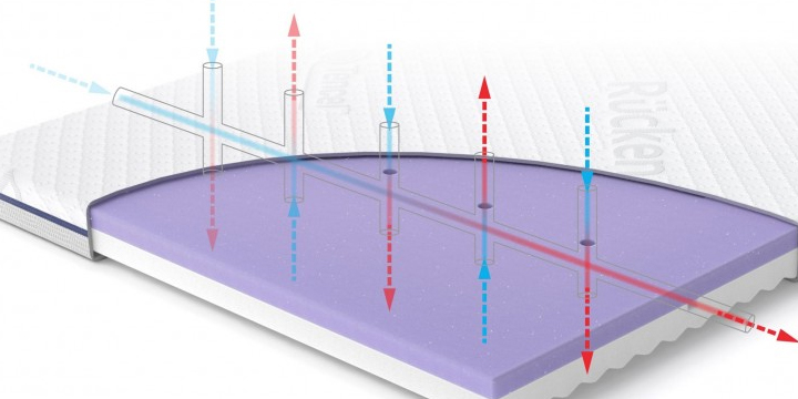 System wentylacji AirPRO jest zintegrowany w sposób zapewniający wentylację na całości materaca. Dzięki temu powietrze dociera do najmniejszych szczelin materaca redukując gromadzenie się wilgoci oraz namnażanie bakterii. System AirPRO składa się z pionowych kanalików wentylacyjnych, które są zintegrowane z poziomymi kanalikami, profilu fali oraz siateczki 3D z jednej strony pokrowca.