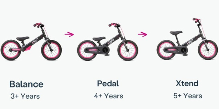 Jazda rowerkiem SmarTrike Xtend Bike może trwać wiele lat - przygodę z tym produktem rozpoczynamy od trybu rowerka biegowego, balansowego, przy którym dziecko odpycha się nogami. Następnie przekształcamy go w rowerek z pedałami, a gdy dziecko podrośnie, przemieniamy rowerek z pedałami w tryb Xtend z rozstawioną ramą, podniesionym siedziskiem i kierownicą.