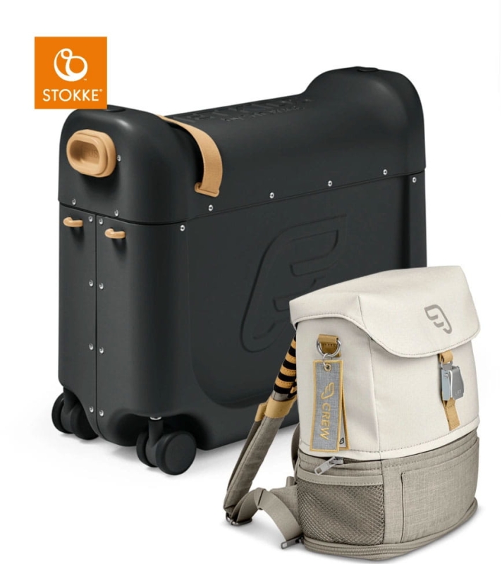 Stokke JetKids tworzy ekskluzywną linię akcesoriów do podróży. Walizka Bedbox może być używana na wiele sposobów: maluch może samodzielnie pchać walizkę za pomocą paska, lub jeździć na niej - a kiedy dziecko się zmęczy, rodzic może zarzucić walizkę na ramię i wygodnie przetransportować ją w miejsce docelowe. Pojemność walizki wynosi 23 litry, dzięki czemu bez problemu pomieści najbardziej potrzebne ubrania, zabawki czy akcesoria. Do walizki Bedbox mieści się plecak Crew Backpack. Jeżdżąca walizka Stokke jest przystosowana do dzieci w wieku 3-7 lat.