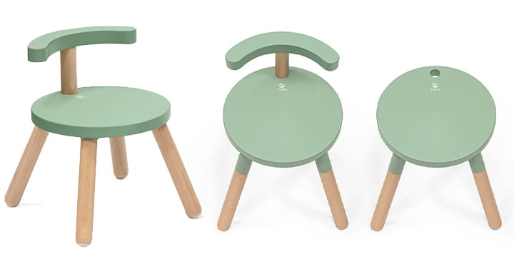 Drewniane dopasowane do stolika krzesełko jest uzupełnieniem zestawu. Krzesełko posiada możliwość regulacji wysokości tak samo jak stół a oprócz tego wersję V2 można przekształcić w taboret - wystarczy zdemontować oparcie.