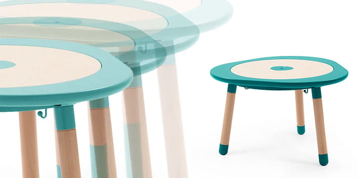 Wysokość stolika regulowana jest w 4 stopniach. Stolik MuTable dopasuje się do wzrostu dziecka w różnym wieku.