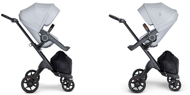 Xplory v6 oferuje dwa kierunki zamocowania siedziska - przodem do rodzica, wtedy siedzisko można regulować w 3 pozycjach - do spania (leżąca), relaksu (półleżąca) i obserwacji świata (siedząca).