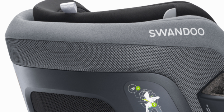 Siedzisko fotelika Swandoo Charlie zostało stworzone tak, aby jego struktura zabezpieczała dziecko przed wsuwaniem się pod pas samochodowy w przypadku zderzenia czołowego, co wpływa na jego bezpieczeństwo.