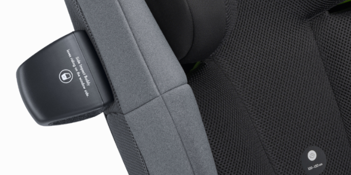 Przez cały okres użytkowania z fotelika, nieprzerwanie zapewnia on ochronę boczną. Niepozorny element, jakim jest wtyczka Side Impact Buddy, wchłania ok. 40% sił podczas zderzenia bocznego. Wystarczy włożyć wtyczkę w dedykowane jej miejsce od najbliższej drzwiom samochodu strony.