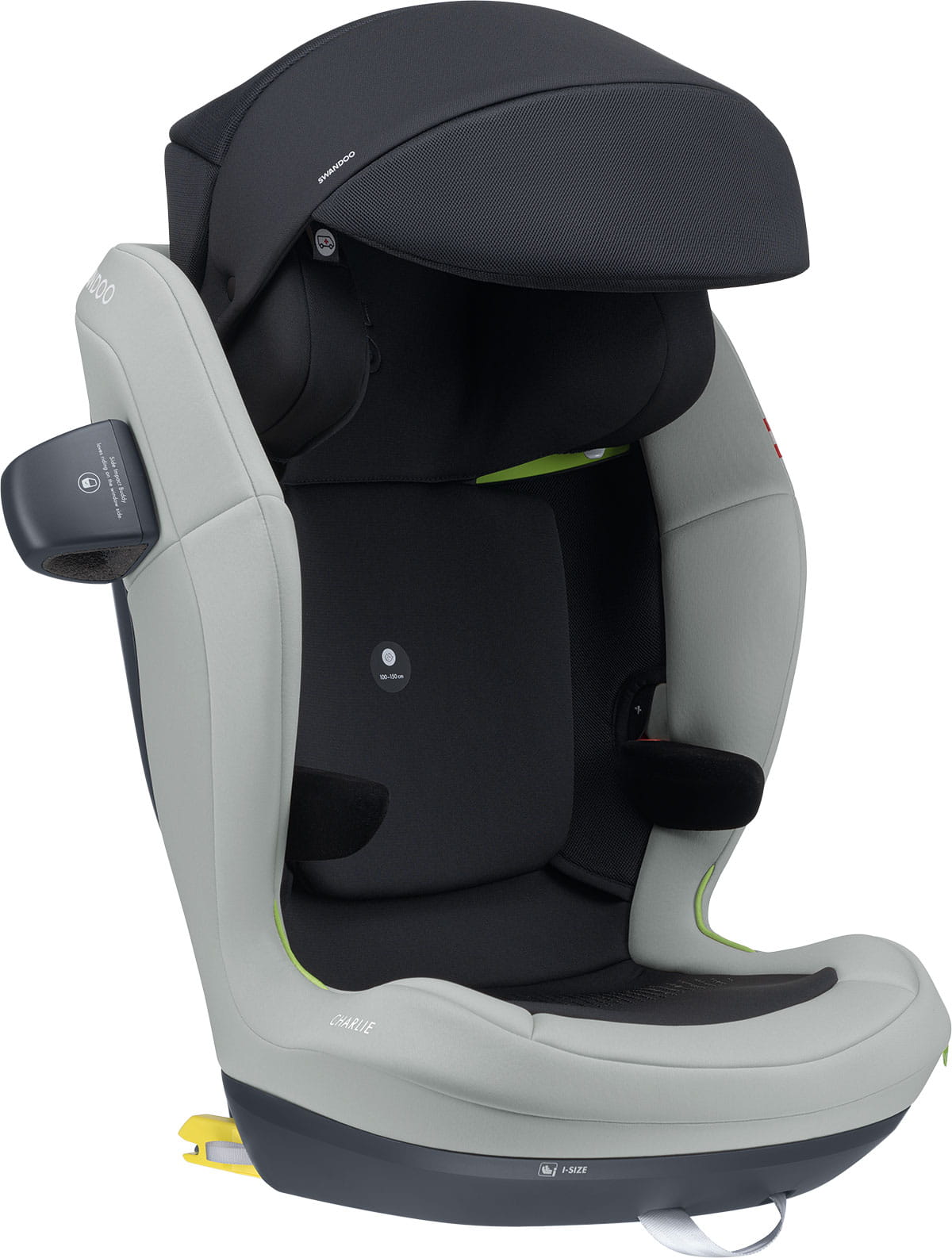 Fotelik samochodowy Swandoo Charlie stworzono w oparciu o normę i-Size, a jego konstrukcja jest przystosowana do przewożenia starszych dzieci o wzroście od 100 do 150 cm. Jego zadaniem jest sprawienie, aby każda podróż dziecka zakończyła się bezpiecznym dotarciem do celu. Swandoo Charlie posiada modularną budowę, rośnie razem z dzieckiem poprzez 11-stopniową regulację zagłówka oraz automatycznej regulacji szerokości. Komfort dziecka podczas krótszych i dłuższych podróży zapewniają ergonomiczne podłokietniki oraz liczne otwory wentylacyjne, fotelik montuje się przodem do kierunku jazdy za pomocą pasa samochodowego lub dodatkowo systemu Isofix.