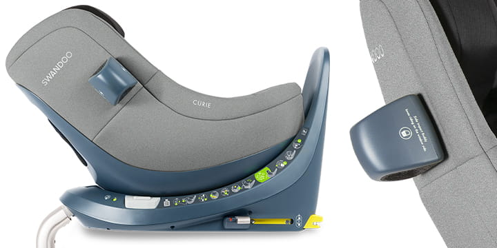 Fotelik samochodowy Swandoo Curie i-Size montowany jest wyłącznie tyłem do kierunku jazdy na obrotowej bazie w zakresie 180°. Fotelik został zaprojektowany z normą i-Size jest przeznaczony dla dzieci o wzroście 40 – 105 cm lub do 18 kg. Curie posiada osłony boczne, komfortową i bezpieczną regulację pochyłu oraz dodatkową wkładkę dla niemowląt.