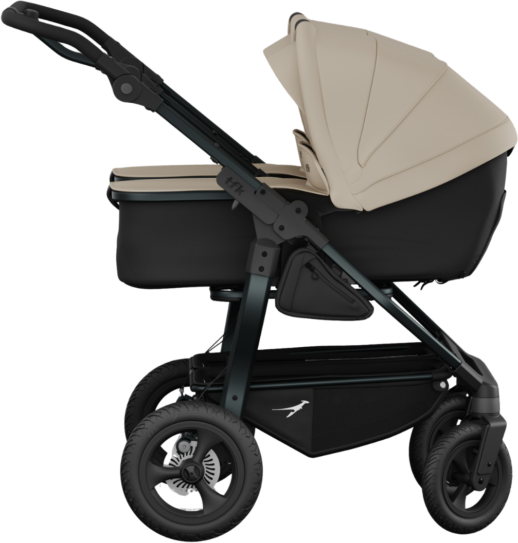 TFK Duo Combi może być używany zarówno jako wózek bliźniaczy 2w1, jak i jako wózek dla rodzeństwa o niewielkiej różnicy wieku. Gondola przekształca się w siedzisko i wpina się w dwóch kierunkach jazdy, dlatego możesz swobodnie przekształcać TFK Combi Duo tak, aby dopasować go do potrzeb Twojej rodziny.
