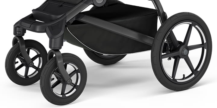Dwa przednie koła, które ułatwiają manewrowanie i spacerowanie po mieście i świetnie radzą sobie w trudnych, terenowych warunkach.