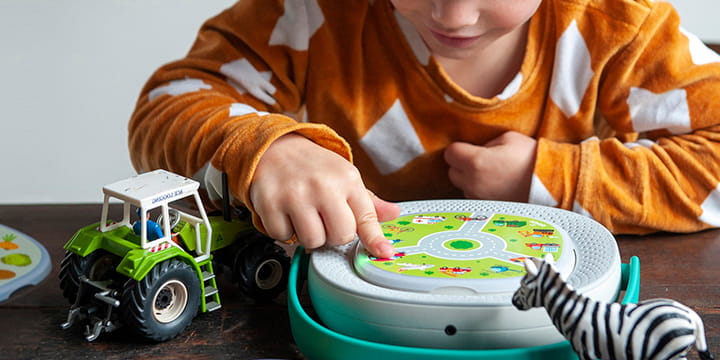Z 60 różnymi ćwiczeniami dźwiękowymi pogrupowanymi w 5 tematów, zestaw startowy TIMIO oferuje 90 minut interaktywnej zabawy dla dzieci w każdym z 8 języków. TIMIO pomaga dzieciom rosnąć i rośnie razem z nimi.