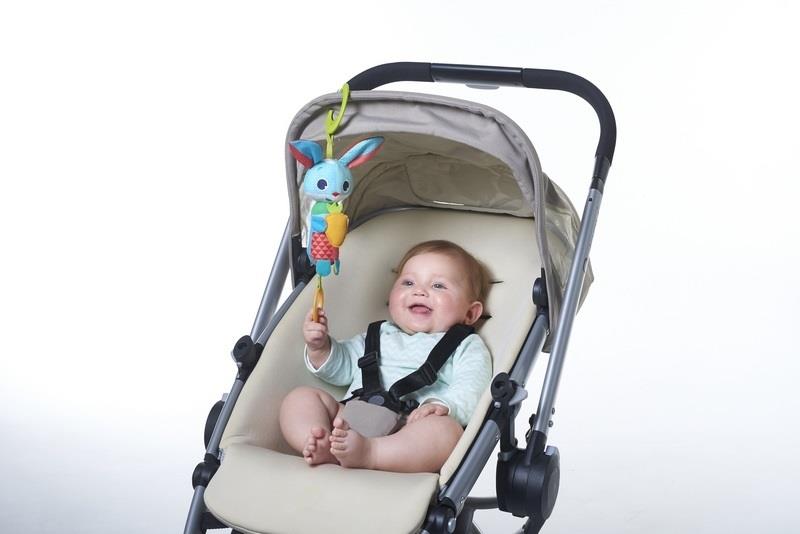 Zawieszka jest na tyle mała, że można ją zabrać ze sobą wszędzie. Dzwoneczek Króliczek Thomas stymuluje dziecko do używania paluszków i dłoni na różne sposoby, pomagając dziecku rozwijać motorykę małą.