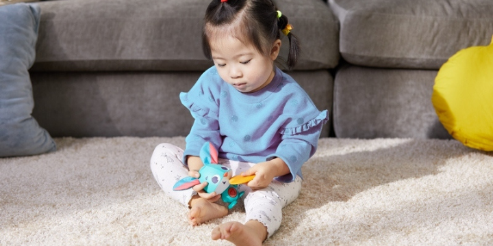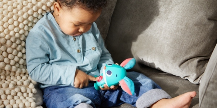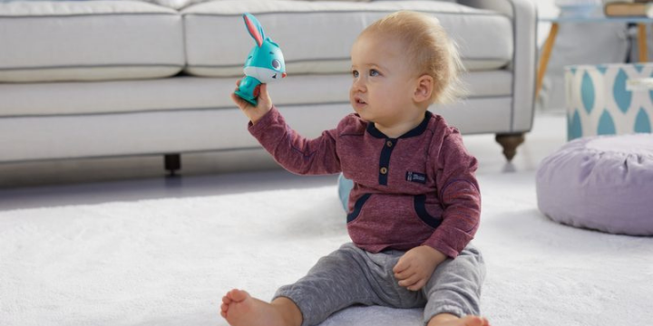 Po naciśnięciu noska królika on kichnie, dzięki czemu dziecko będzie uczyć się związków przyczynowo-skutkowych oraz naśladowania i wspólnej zabawy - z pewnością samo zacznie udawać, że kicha, naciskając własny nosek lub nosek rodzica.