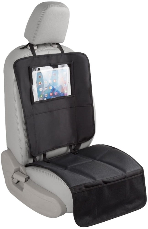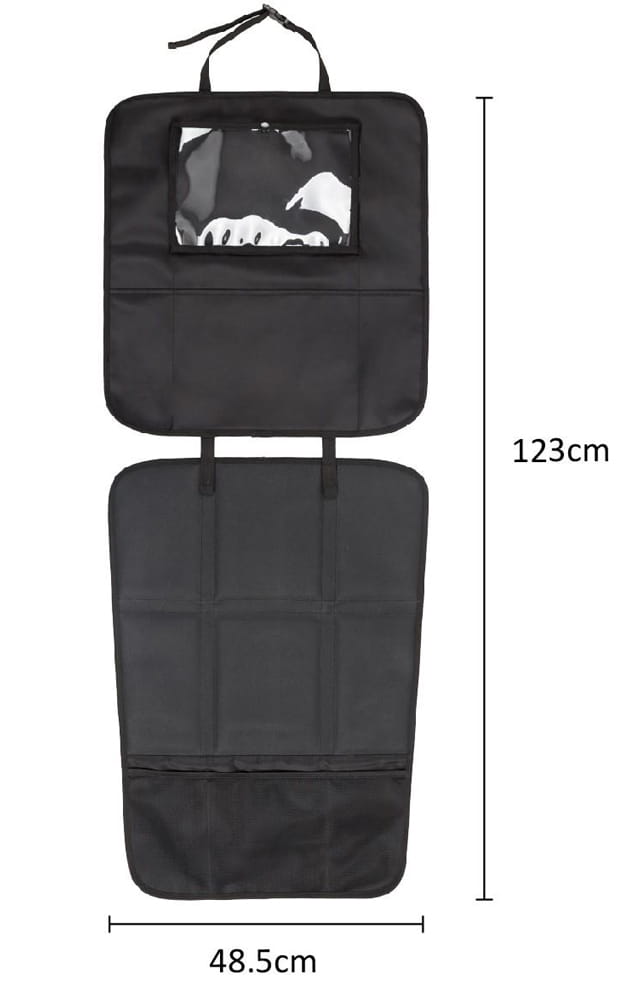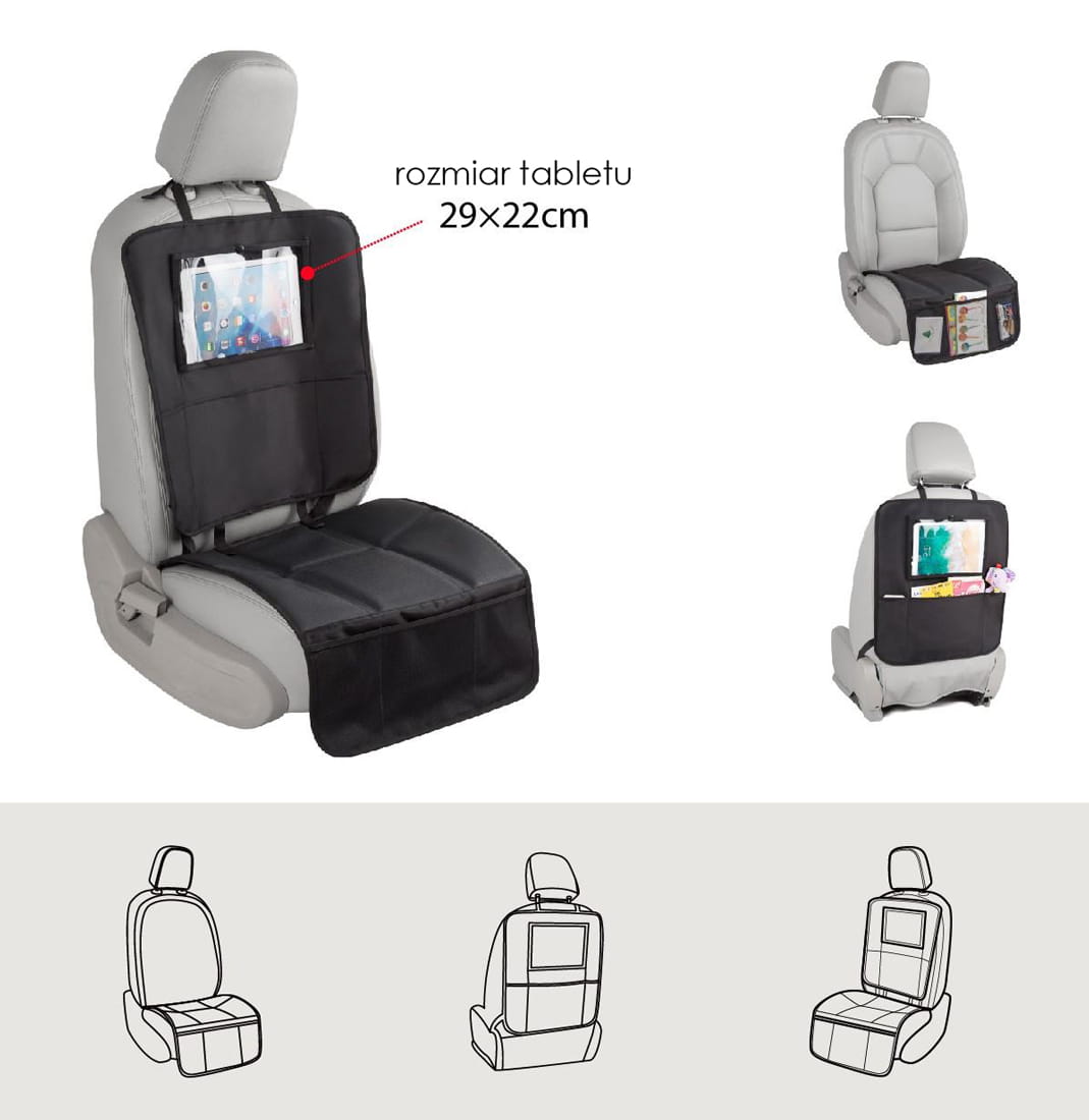 Ochronna mata na fotel samochodowy 3w1 pozwala ochronić tapicerkę kanapy samochodowej podczas kiedy zamontowany jest na niej fotelik samochodowy. Mata wyposażona jest w okienko na tablet co pozwoli starszym maluchom rozładować napięcie podczas dłuższych podróży. Mata jest uniwersalna, jej sposób montażu pozwoli zastosować ją w każdym samochodzie. Matę można też rozdzielić na dwie części i wykorzystać jako organizer na przedni fotel lub tylko matę chroniącą siedzisko. Dlaczego warto pomyśleć o macie ochronnej? Przede wszystkim chroni kanapę samochodu przed otarciami i zabezpiecza przed zabrudzeniem zwłaszcza w porze jesienno zimowej.