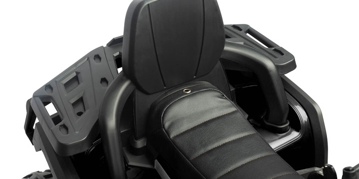 Duże siedzisko z oparciem zostało wykończone ekoskórą, przez co pasażerowi będzie wygodnie. O udaną zabawę zadba panel multimedialny, który posiada wgrane melodie, radio FM, USB, a także łączność Bluetooth.