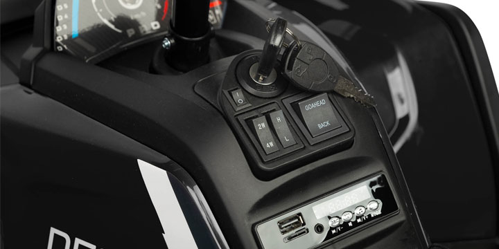 Pojazd uruchamia się za pomocą stacyjki z kluczykami, za pomocą pilota można sterować nim zdalnie.