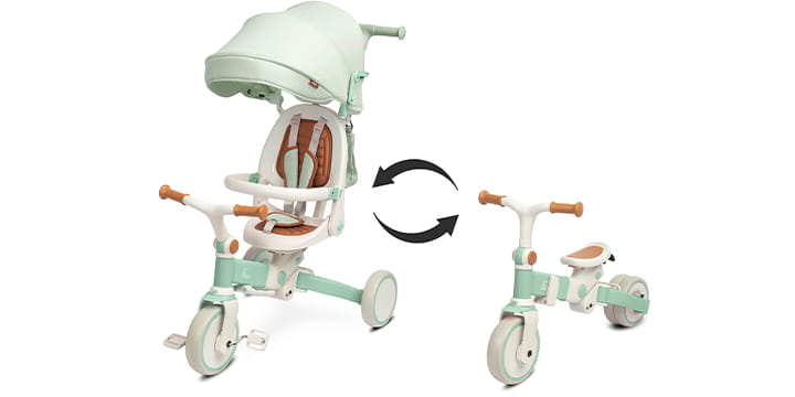 Dzięki modularności, najmłodsze dzieci mogą korzystać z niego jako klasycznego rowerka pchanego przez rodziców, co idealnie sprawdza się na dłuższych spacerach. Starsze dzieci mogą jeździć samodzielnie, a po zmęczeniu łatwo obrócić siedzisko i ustawić oparcie do pozycji półleżącej.