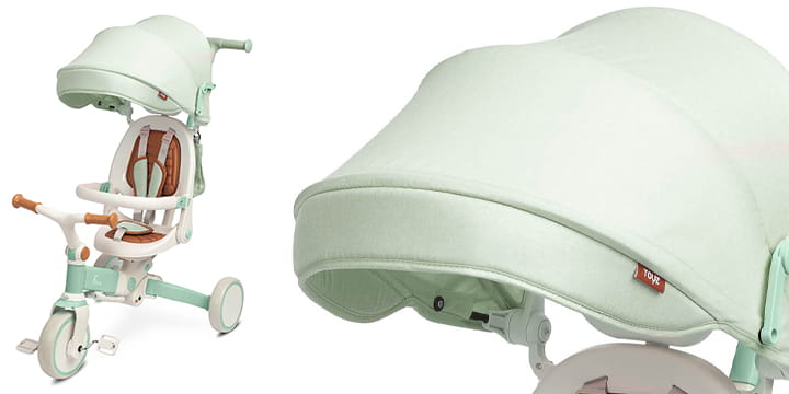 Dzięki daszkowi chroniącemu przed słońcem, rowerek zapewnia długotrwały komfort jazdy bez obaw o palące promienie słoneczne.