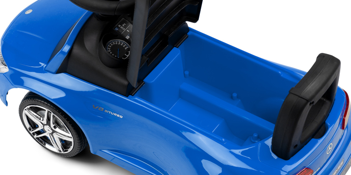 Toyz by Caretero Mercedes AGM to jeździk, którego wygląd jest zbliżony do prawdziwego samochodu - kierownica z klaksonem i melodiami tylko dodaje efektu, a siedzisko ze schowkiem na zabawki jest formą bagażnika, do którego maluch może zapakować dodatkowe rzeczy. Maluch bawiący się jeździkiem jednocześnie rozwija umiejętności ruchowe i kształtuje wyobraźnię. Licencja marki Mercedes pozwoliła dokładnie odwzorować istniejący już samochód sprawiając, że maluch może poczuć się jak prawdziwy kierowca.