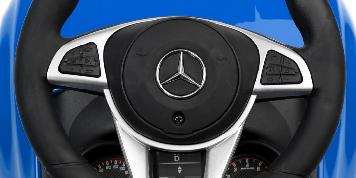 Toyz by Caretero Mercedes AMG posiada kierownicę z klaksonem i dźwiękami - dzięki temu, oczami wyobraźni maluch może przenieść się z salonu wprost na zatłoczoną, miejską ulicę.