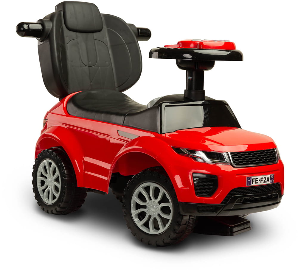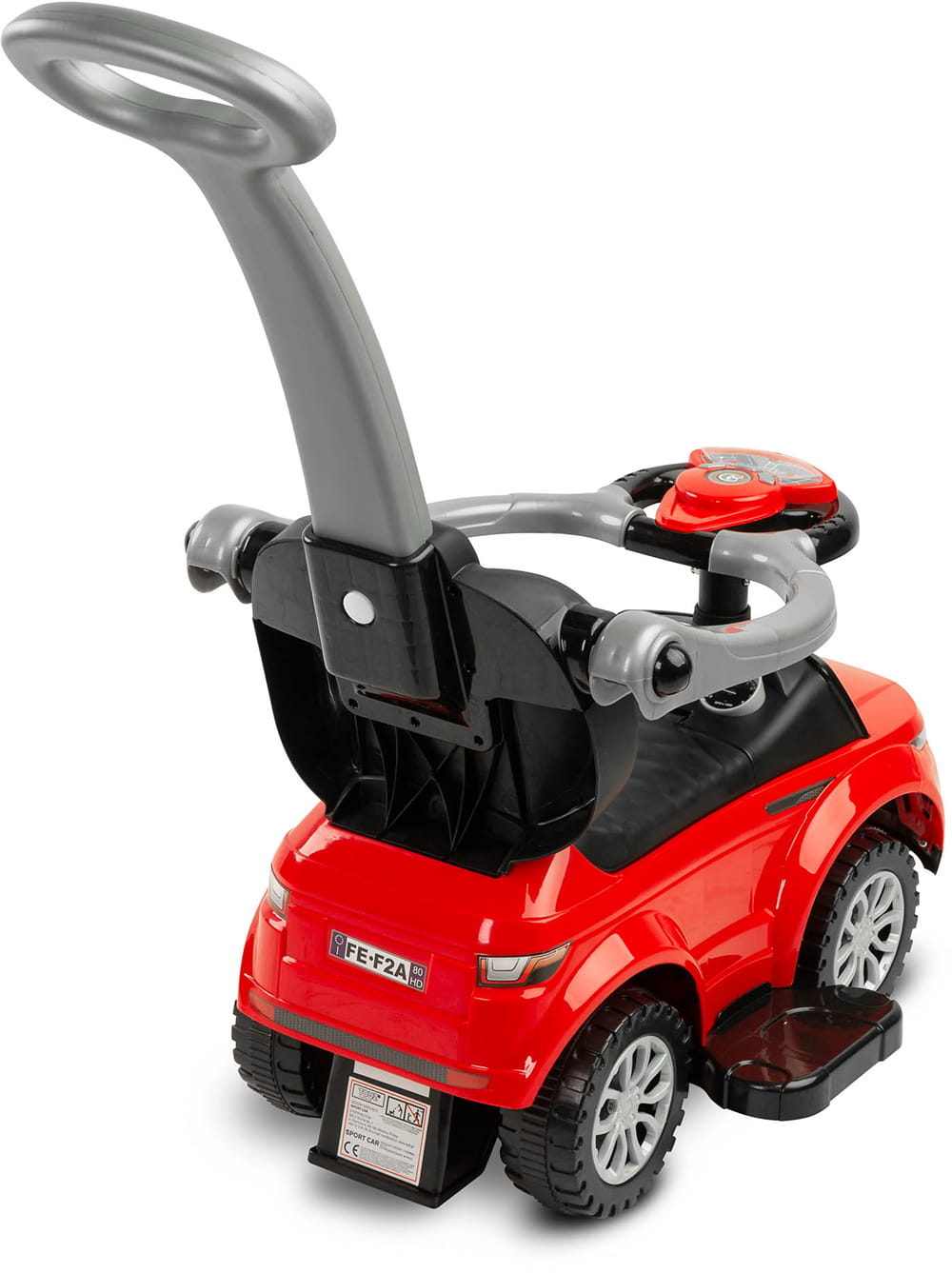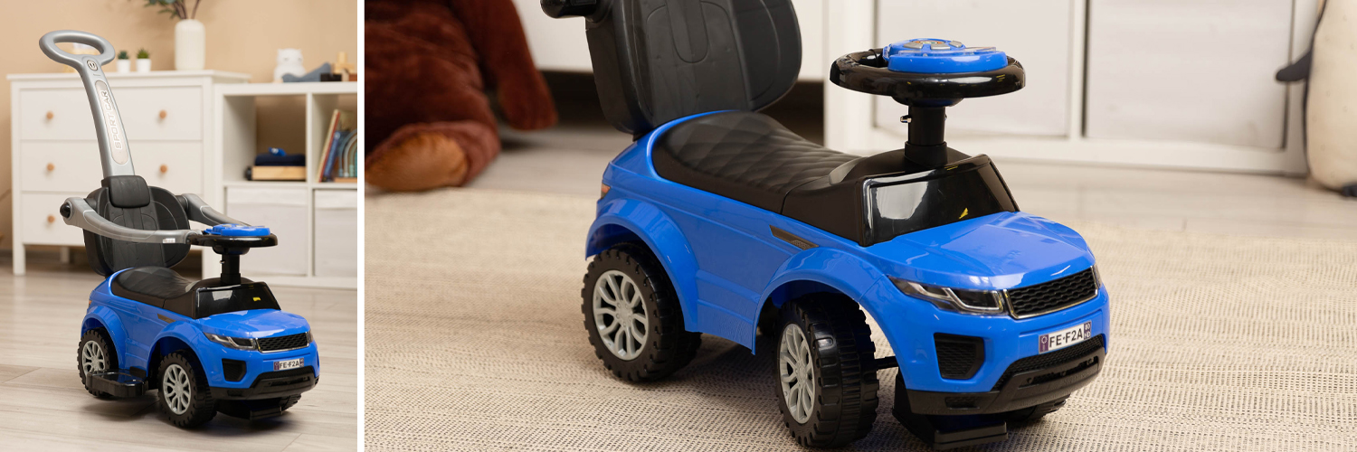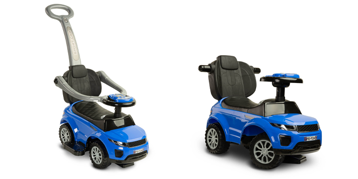 Jeździk może prowadzić rodzic - dzięki specjalnemu uchwytowi można zastąpić nim spacerówkę. Dodatkowo, posiada barierki, które zabezpieczą malucha przed wywrotką. Barierki są zdejmowane - po ich pozbyciu się, Sport Car staje się typowym jeździkiem dla starszego dziecka. Pod siedziskiem znajduje się specjalna skrytka.