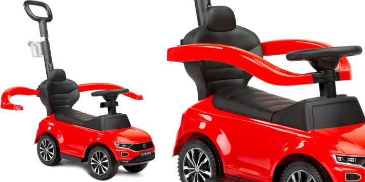 Toyz by Caretero VW T-ROC to jeździk dziecięcy dla dzieci w wieku od 12 do 36 miesięcy, dzięki któremu maluch nie tylko poprawi swoje umiejętności ruchowe, ale również będzie się świetnie bawić. Dzięki licencji Volkswagen, design jeździka nie odstaje od prawdziwego samochodu. Jego przednie koła są skrętne, dzięki czemu maluch może nim wygodnie manewrować, a budowa zapewni dziecku bezpieczeństwo - posiada rączkę do prowadzenia przez rodzica oraz zamykane barierki, dziki którym mały użytkownik nie wypadnie z siedziska. Dla wygody malucha, jeździk Toyz by Caretero VW wyposażono w obszerne siedzenie ze schowkiem na zabawki oraz chowane podesty pod nóżki.