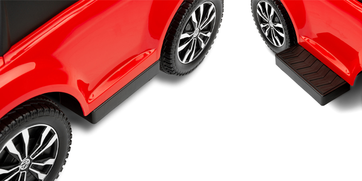 Jeździk Toyz by Caretero VW T-Rock posiada wysuwane podesty pod nogi, o które maluch może się wygodnie oprzeć.