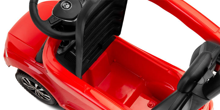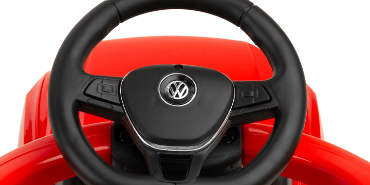 Siedzisko jeździka VW T-ROC jest tapicerowane, dzięki czemu zapewnia komfort i otacza malucha luksusem.