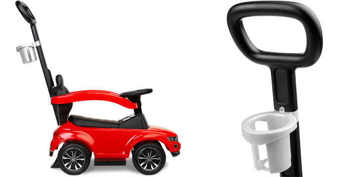 Rodzic może panować nad przebiegiem jazdy - jeździk z rączką do prowadzenia oraz uchwytem na kubek pomoże mamie lub tacie kontrolować sytuację.