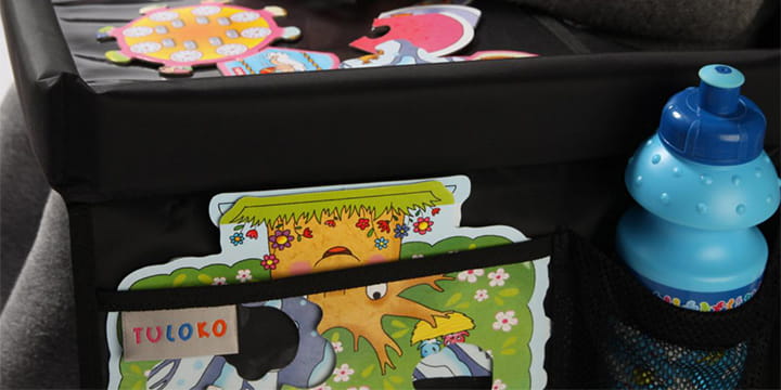 Tuloko stworzyło bezpieczny stolik do podróżowania w samochodzie. Stolik jest wykonany z bezpiecznych, miękkich i lekkich materiałów i posiada pasek do zapięcia wokół fotelika. Stolik skutecznie zajmuje czas dziecku i nawet długie podróże nie są już nudne.