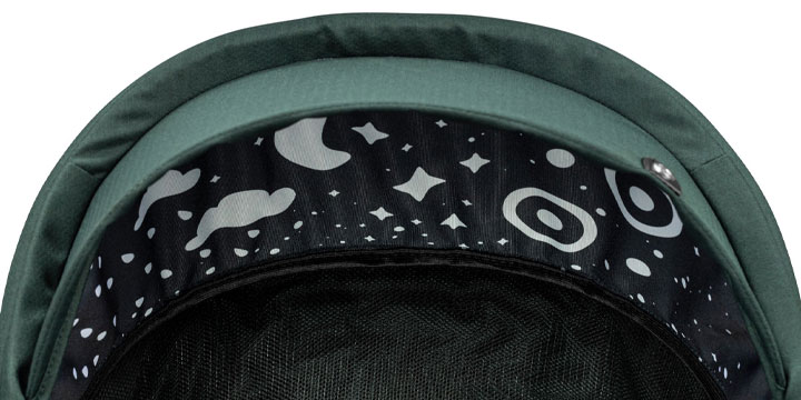 Różnorodne ilustracje o wysokim kontraście umieszczone wewnątrz daszka pomagają wzmocnić wzrok dziecka oraz wzmacniają połączenia między mózgiem a oczami. Słońce, księżyc, chmury i gwiazdy stanowią zaszyfrowaną wiadomość oznaczającą, że tylko niebo jest granicą.