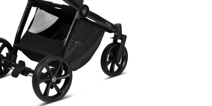 Podwójnie amortyzowany stelaz z kołami All Road sprawia, że jazda jest płynna i wygodna. Obrotowe, bezobsługowe koła umożliwiają wygodne skręcanie czy zawracanie. Wersja Mio3+ została wyposażona w udoskonalony system jezdny.