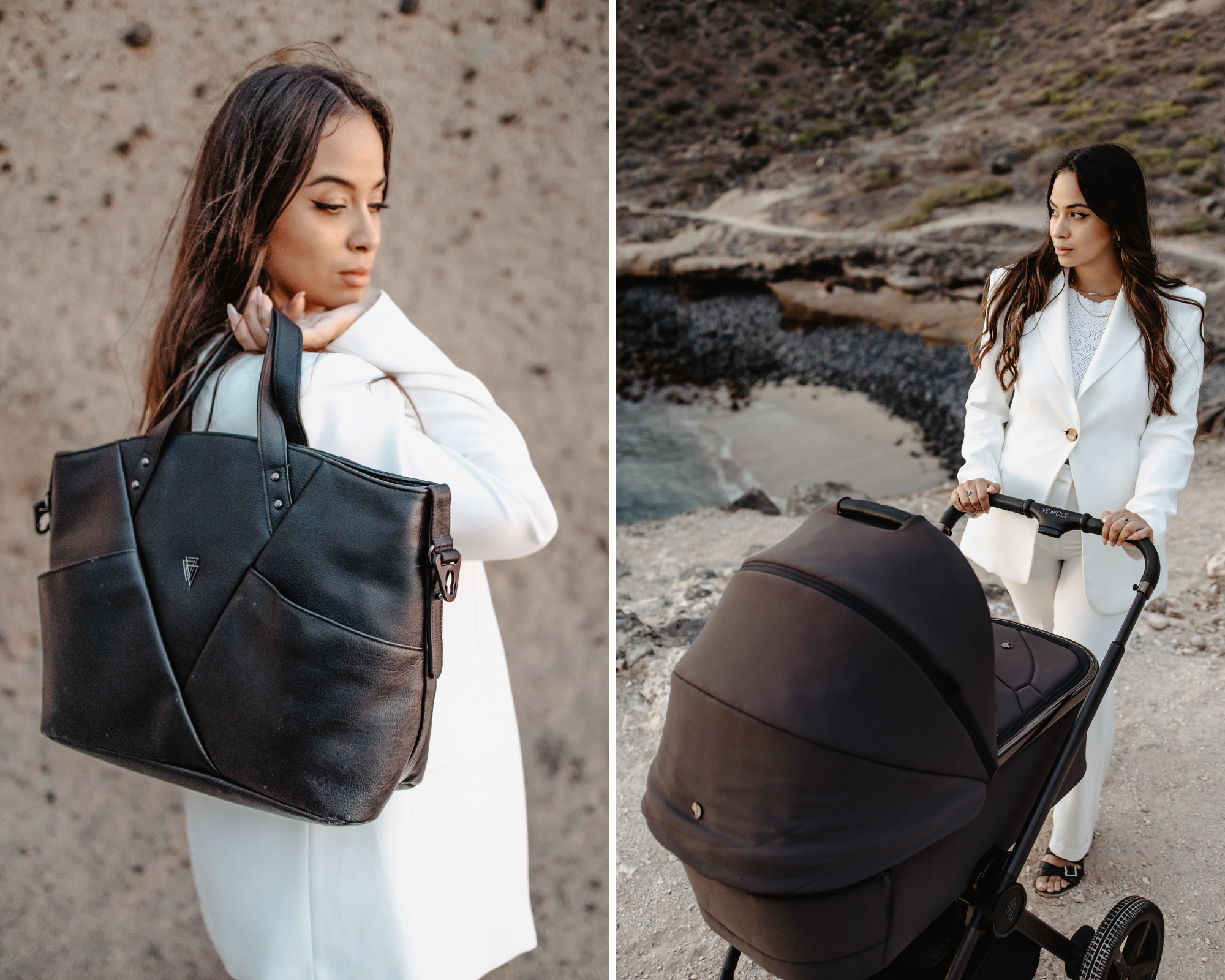 Dodatki do tego wózka nie mogą być zwyczajne. Dlatego nawet torba pielęgnacyjna wygląda jak stylowa torebka ze światowych domów mody. Torebka jest pojemna, trzyma fason nawet po przypięciu jej do wózka.