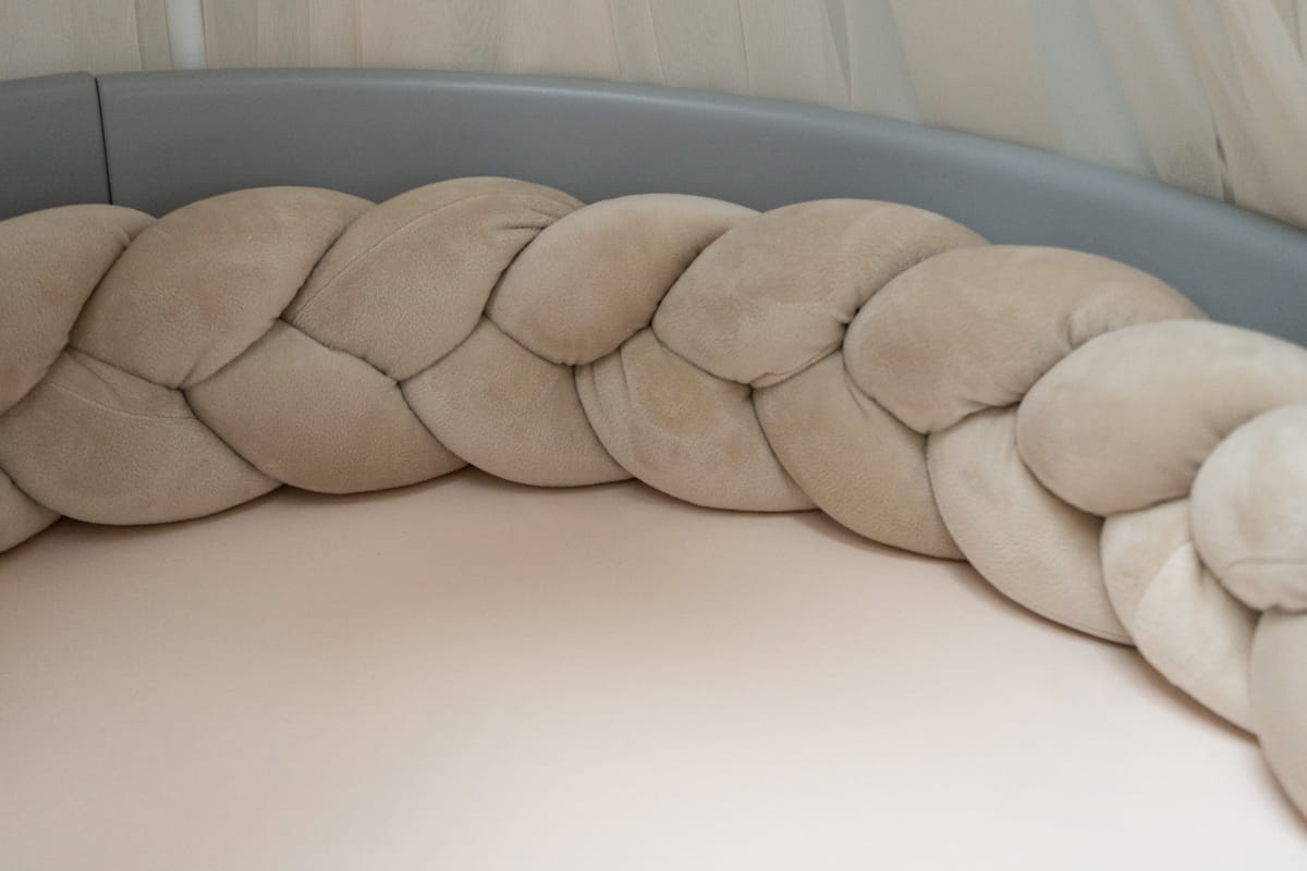 Ten luksusowy materiał nie tylko dodaje elegancji, ale również stanowi przyjemne dla dotyku wykończenie. Dzięki zastosowaniu weluru warkocz staje się nie tylko funkcjonalnym elementem łóżeczka, ale także estetycznym dodatkiem, który doskonale komponuje się z każdym wystrojem dziecięcego pokoju.