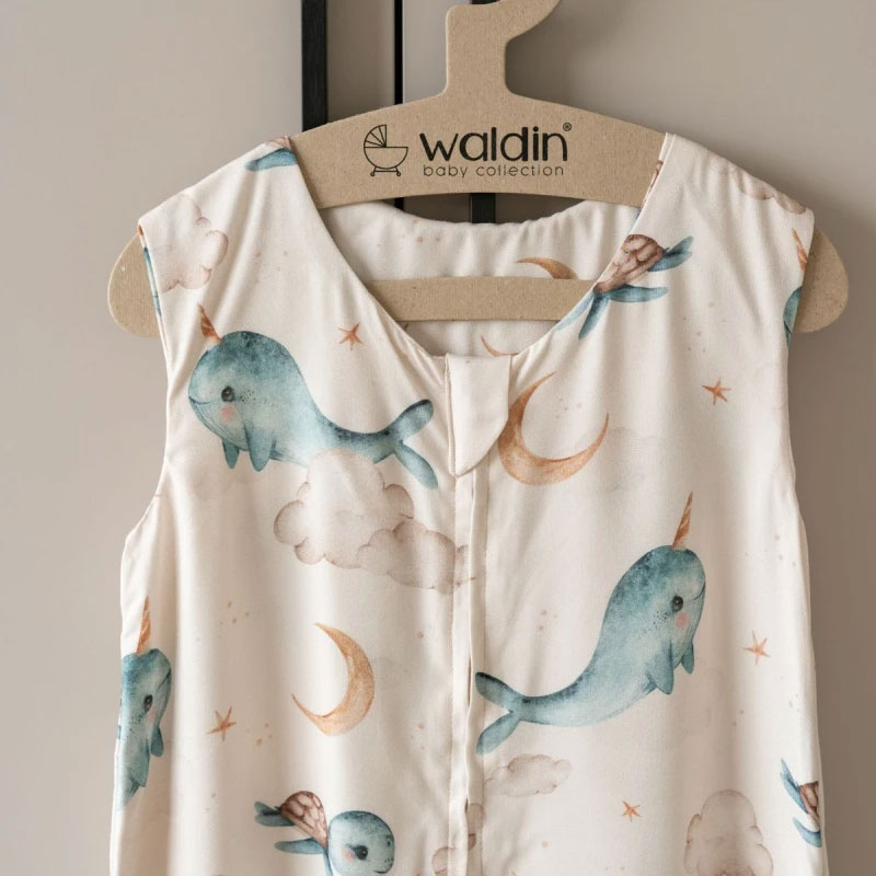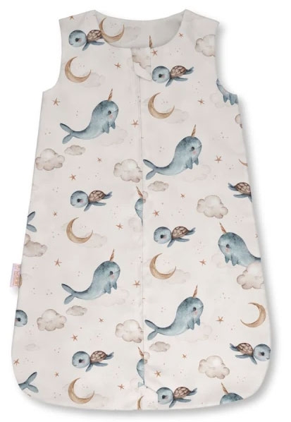 Waldin - bambusowy śpiworek dla niemowląt 0-6 miesięcy | Wieloryb Ciemny Beż S