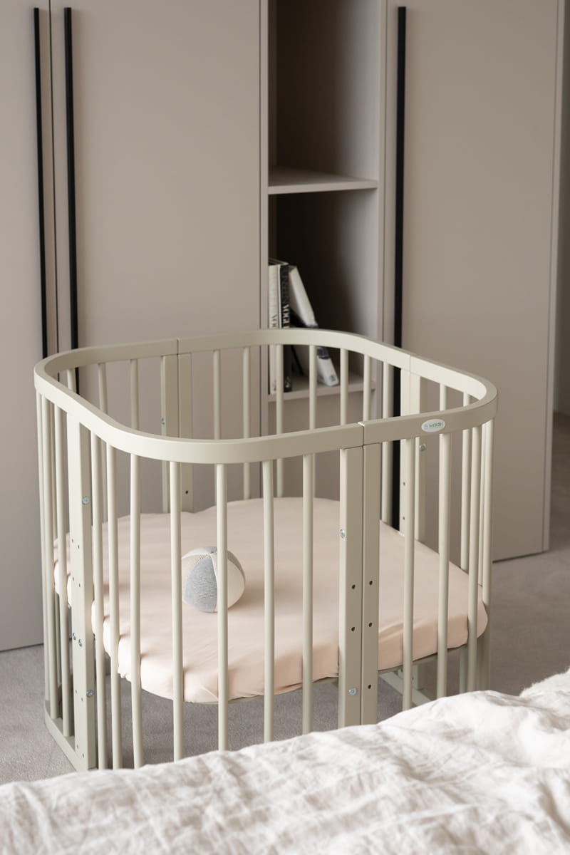 Prześcieradło skrojone pod materac małego łóżeczka Waldin W2 7w1 . Produkt projektowany, uszyty w Polsce, z polskich materiałów. Prześcieradło jest przyjemne w dotyku i miękkie.