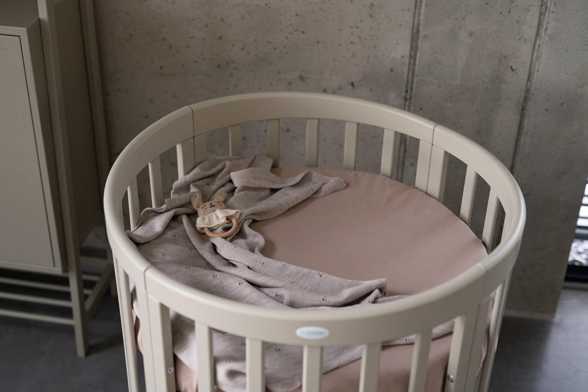 Prześcieradło skrojone pod duży materac owalnego łóżeczka Waldin 7w1 . Produkt projektowany, uszyty w Polsce, z polskich materiałów. Prześcieradło jest przyjemne w dotyku i miękkie.